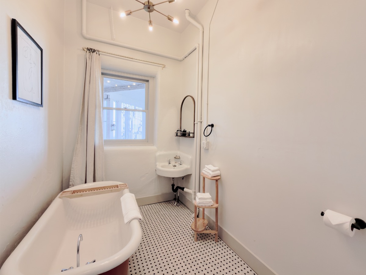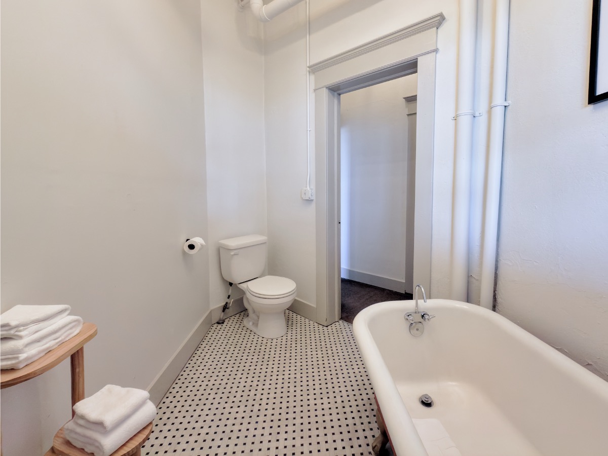 - Clawfoot soaking tub (no shower)