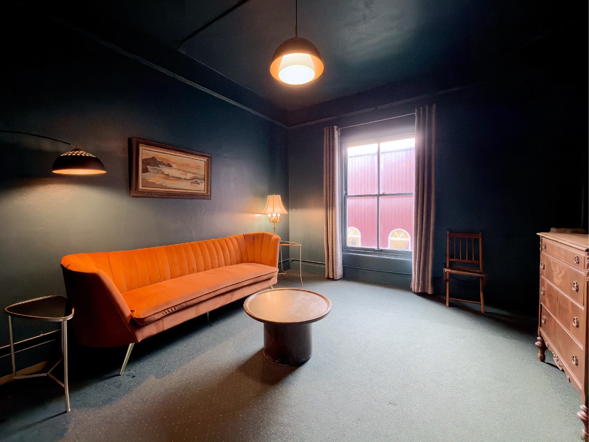 The room retains authentic historic charm—think century-old windows and doors—while offering modern comfort with portable air conditioning in summer. Sound travels easily in the historic building, so please keep voices low at night and early mornings.